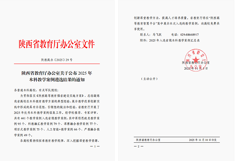 近日,陕西省教育厅办公室印发《关于公布2025年本科教学案例遴选结果的通知》(陕教高办〔2025〕29号),我校通信与人工智能学院教师杨沙沙凭借《融合“一主多辅”思政模式的条码技术应用项目式教学案例》成功入选项目式教学案例类别,成为省级优秀本科教学案例之一,彰显学校在本科教育教学改革与课程创新领域的突出成果。