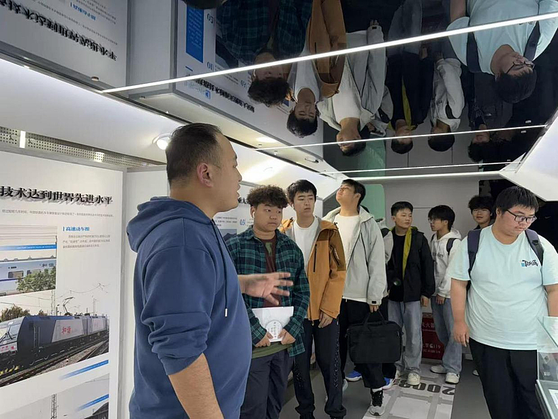 他们围绕在展品前,结合自身专业,与讲解员和带队老师积极交流,对所学专业的行业背景、技术前沿和未来使命有了更为直观和深刻的认识,心中“交通强国”的理想信念种子悄然生根发芽。