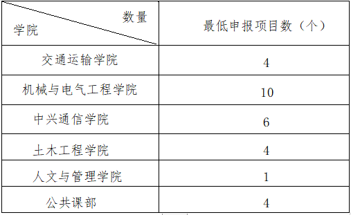 10.各教学单位最低申报项目数量如下: