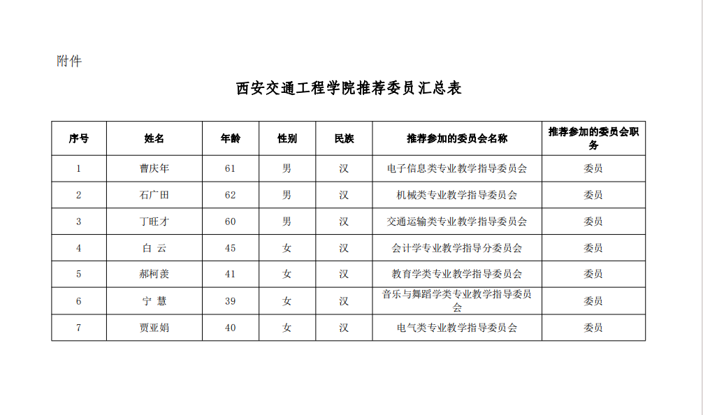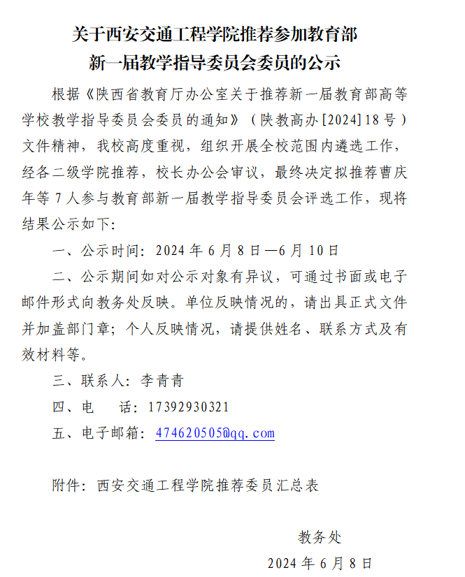 关于西安交通工程学院推荐参加教育部新一届教学指导委员会委员的公示